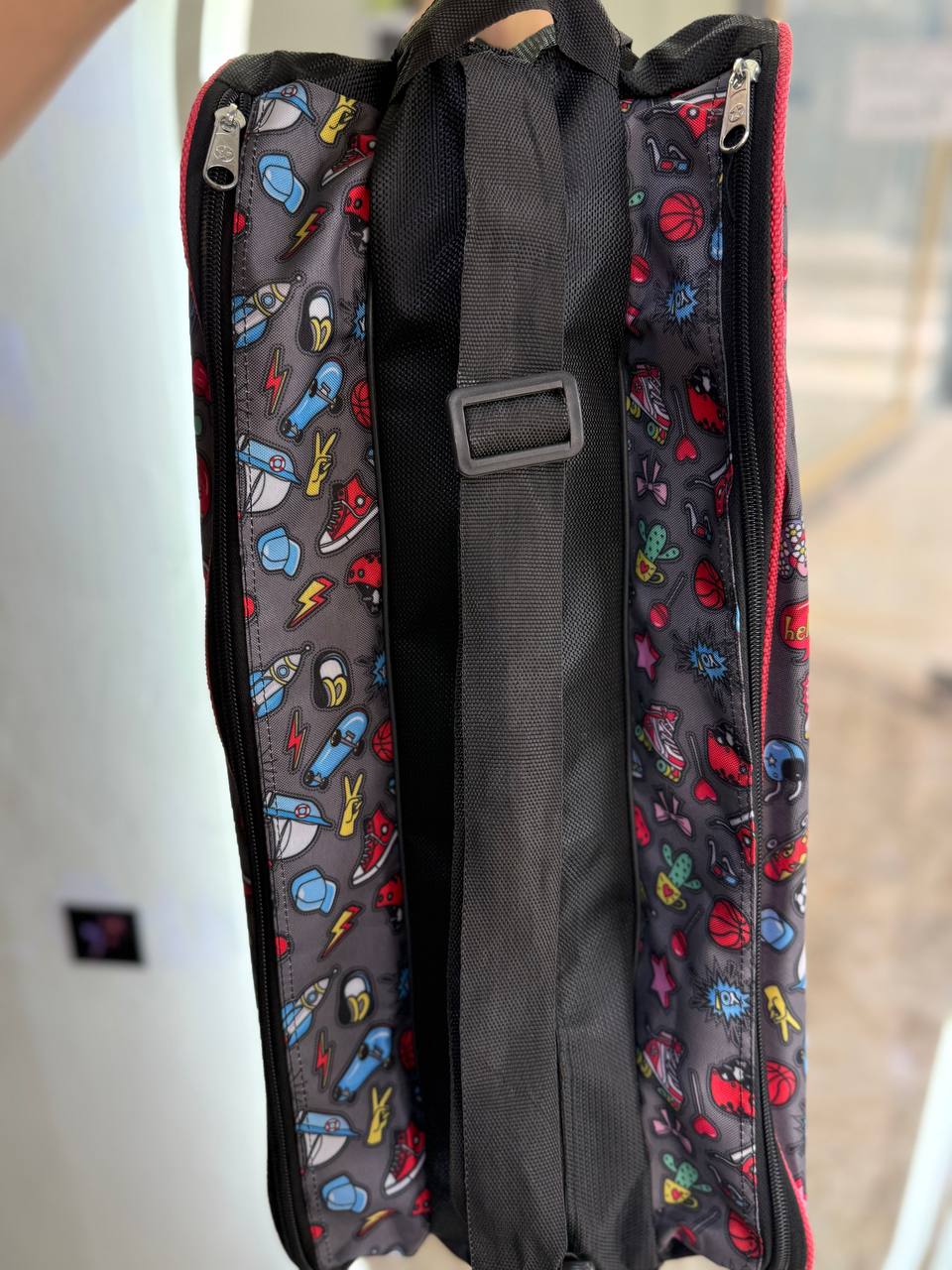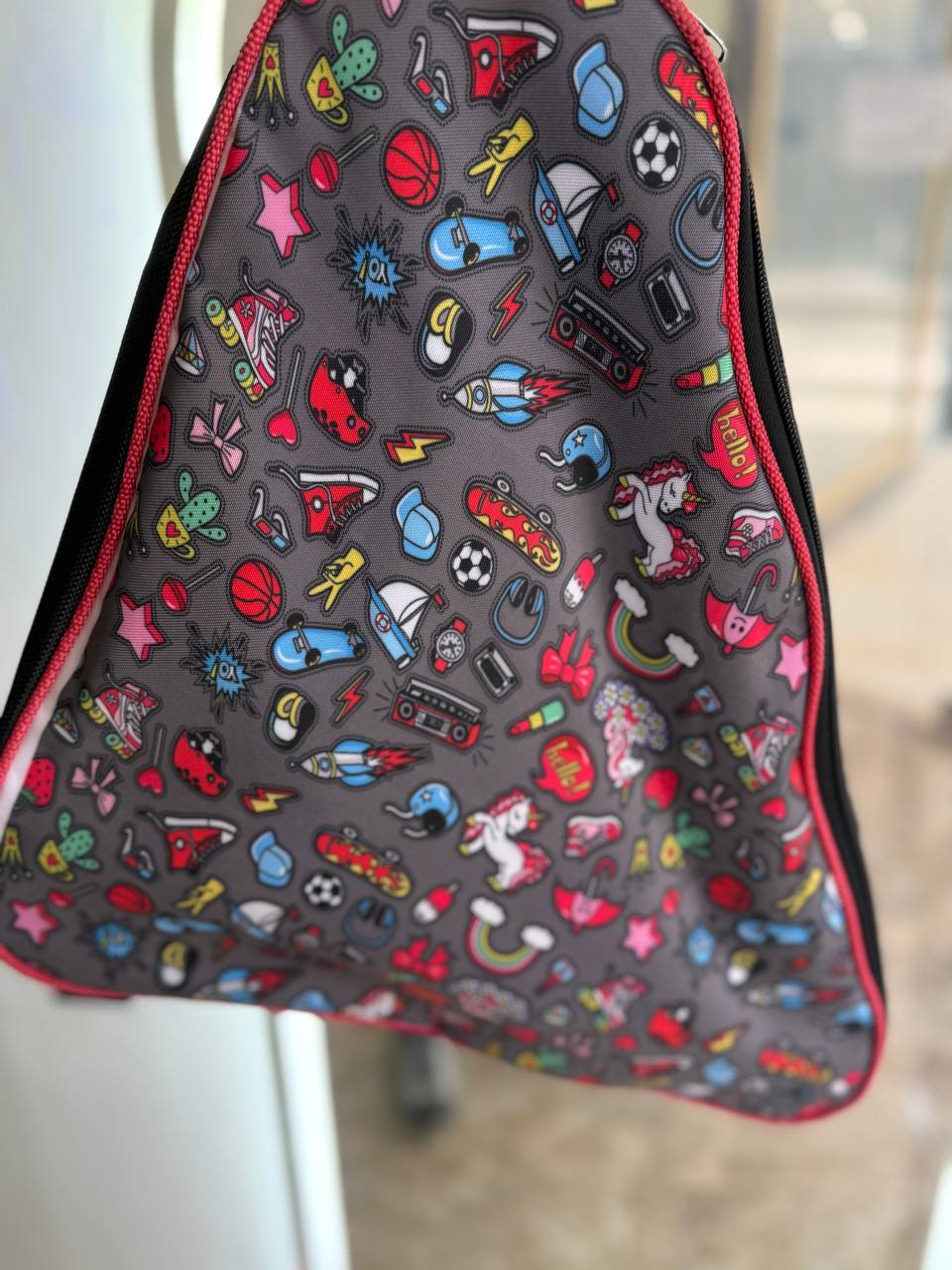 ساک مثلثی اسکیت دارای دو زیپ مجزا که اسکیت و تجهیزات (ست ایمنی/وسایل شخصی/کلاه و....) خود را داخل آن قرار دهید